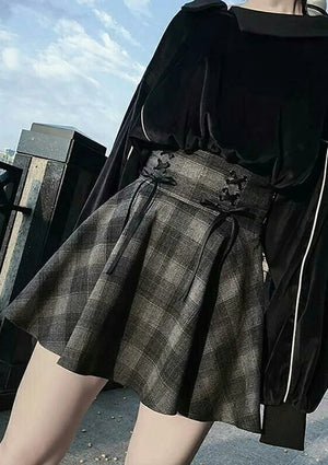 Vintage High Waist Plaid Skirt