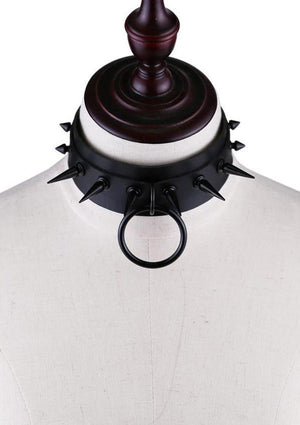Black rivets choker refers to a type of choker necklace that features black rivets as embellishments. The rivets can be placed in various patterns or designs, and can be made from different materials such as metal or plastic.