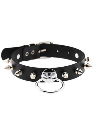 Black Gothic rivet ring choker is a type of choker necklace that features a black band with rivets and a ring detail. It is typically made of materials such as leather, faux leather, or PVC, and is often associated with gothic or punk fashion. It is a unique and edgy accessory that can add a touch of punk or gothic style to any outfit. They are often available in a variety of sizes and styles, so it's important to measure your neck and choose a choker that fits comfortably and securely.