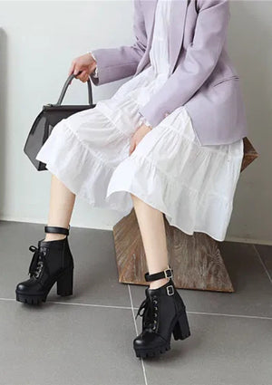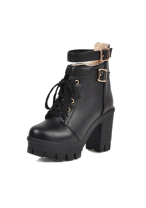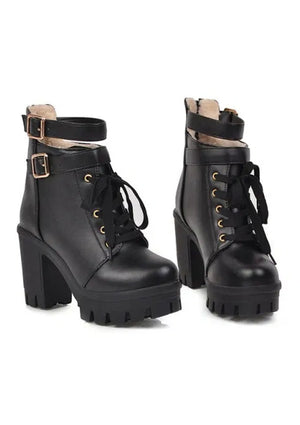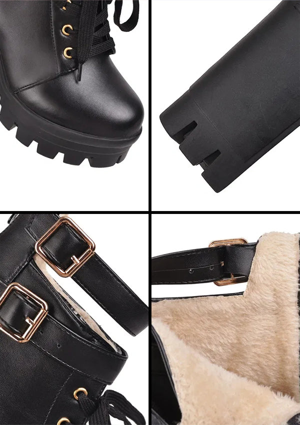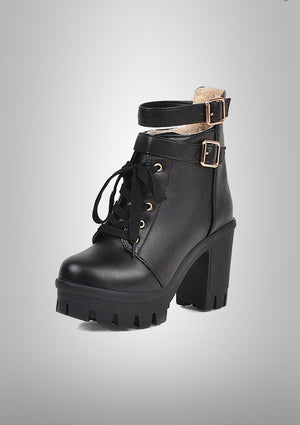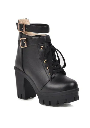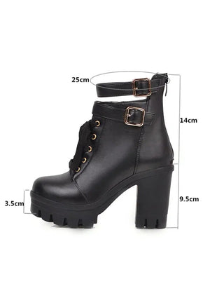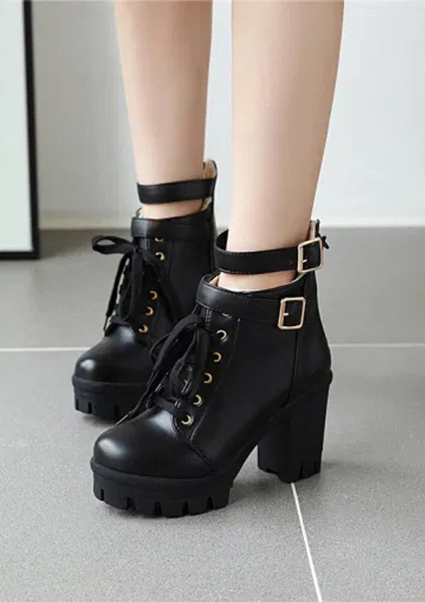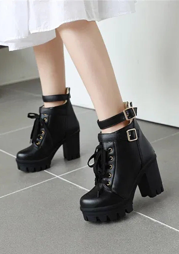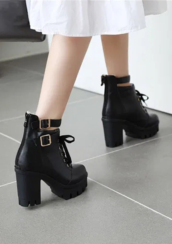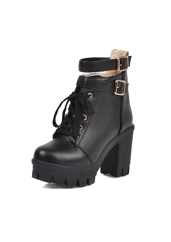 Black Punk Goth Buckle Strap Biker Ankle Boots