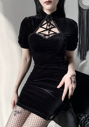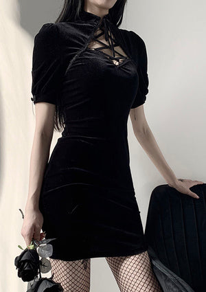 Gothic Short Sleeve Hollow Out Bodycon Dress