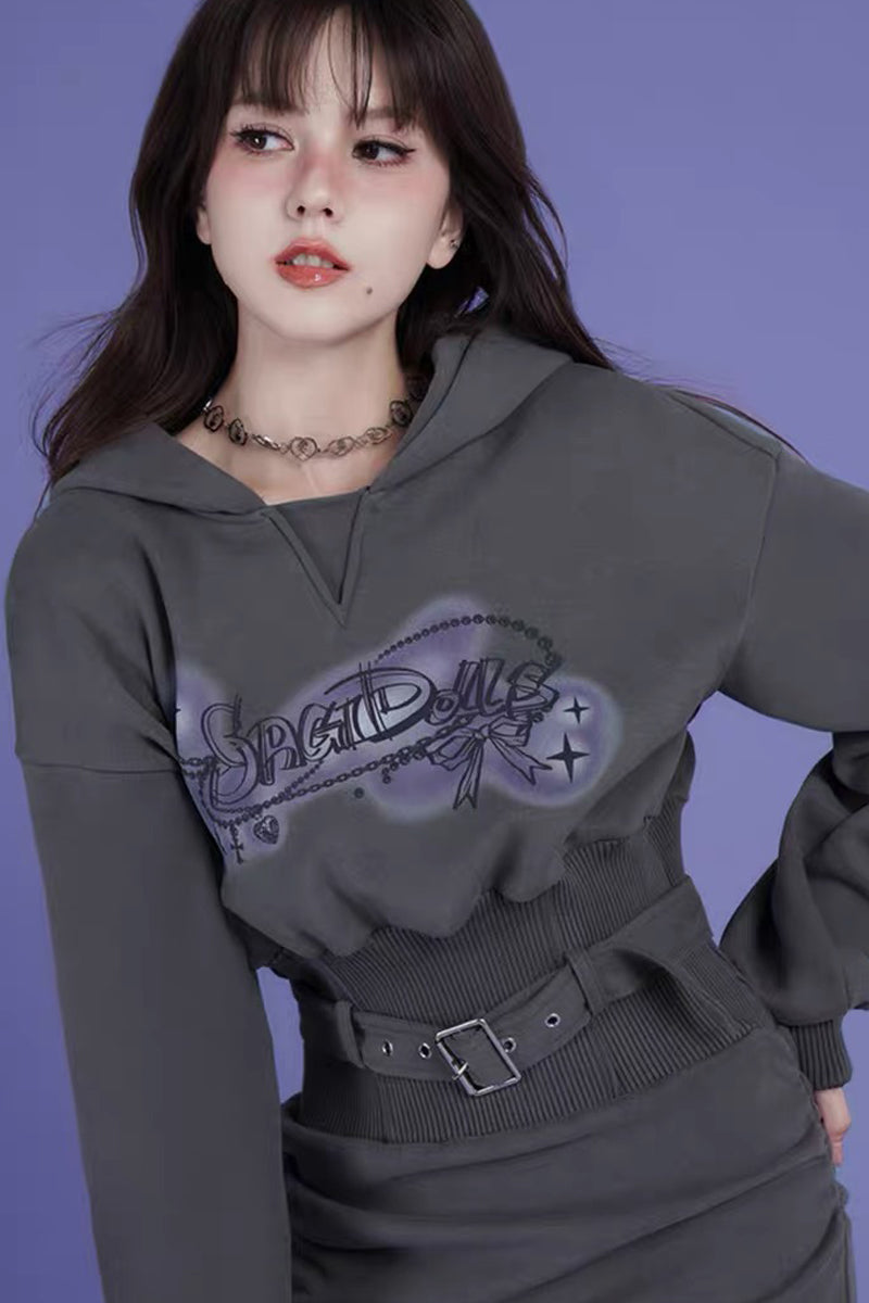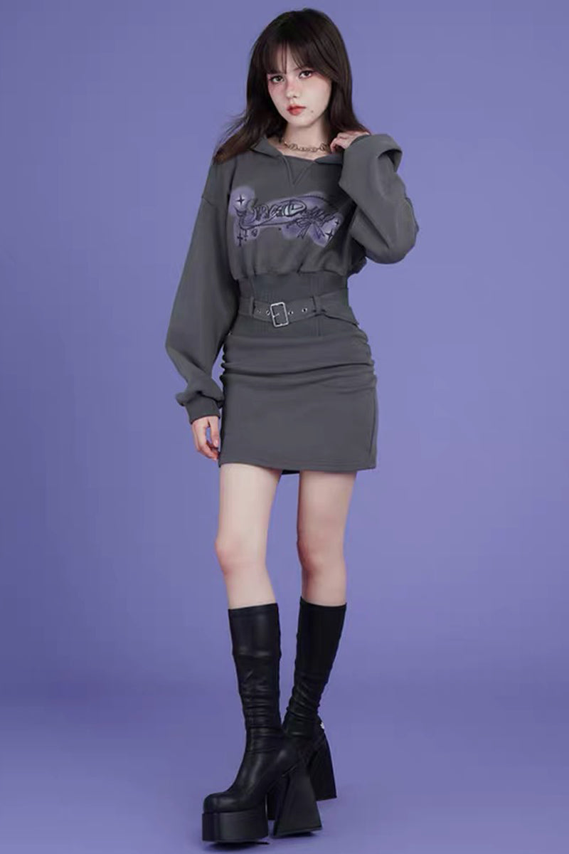 Hot Girl Fleece Hooded Sweatshirt Dress
