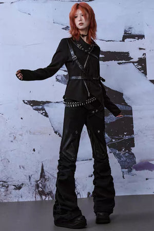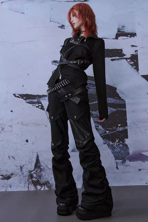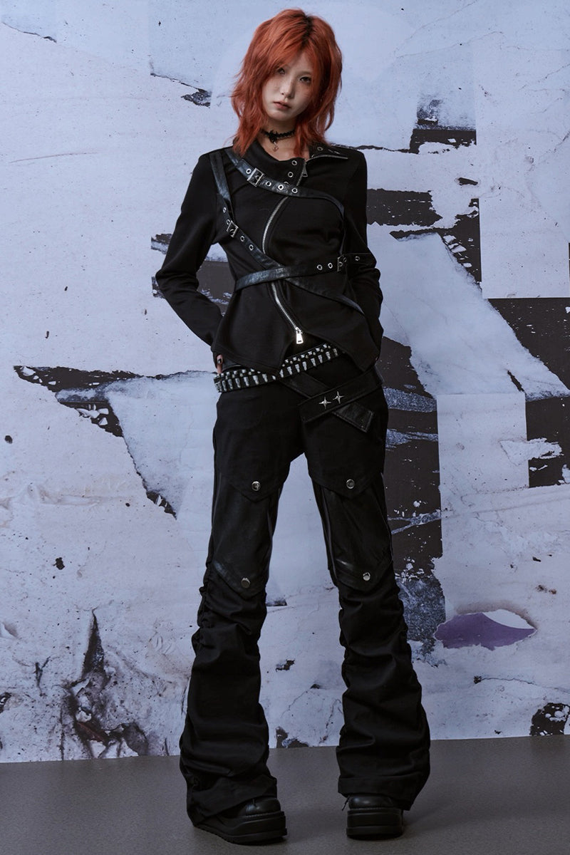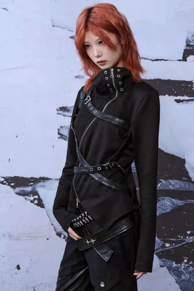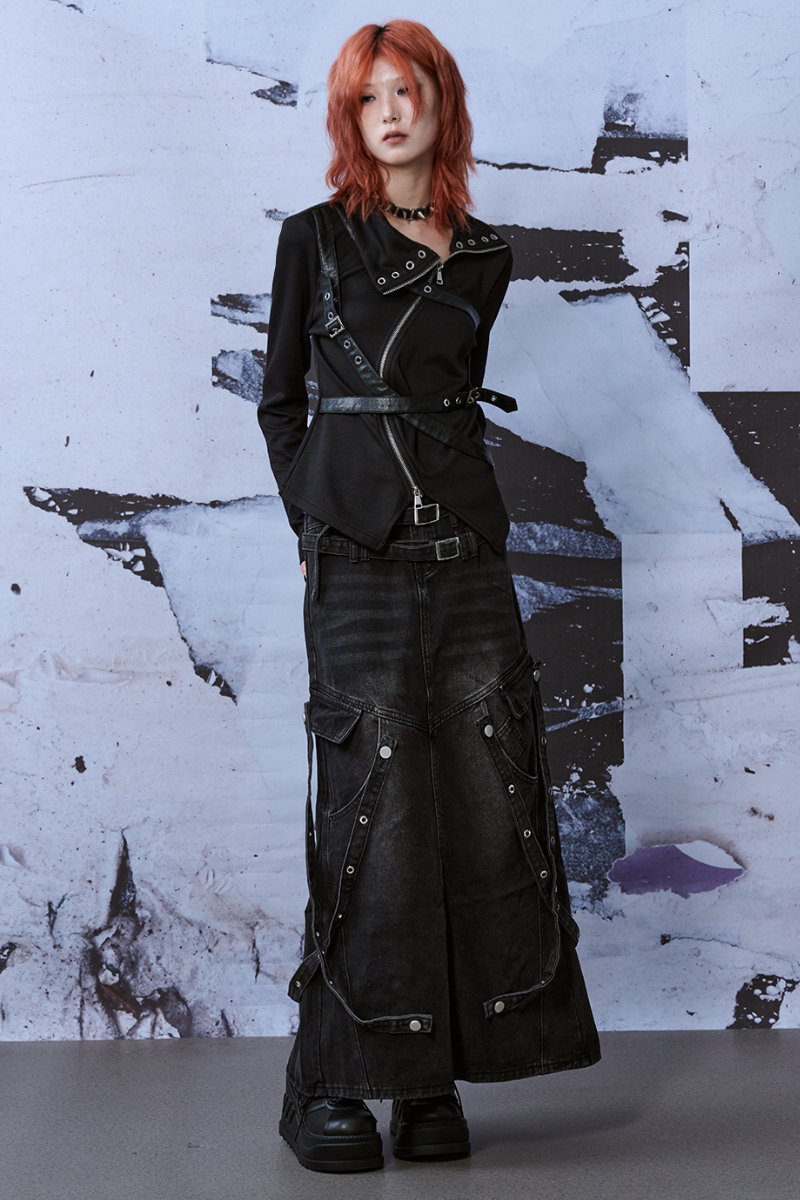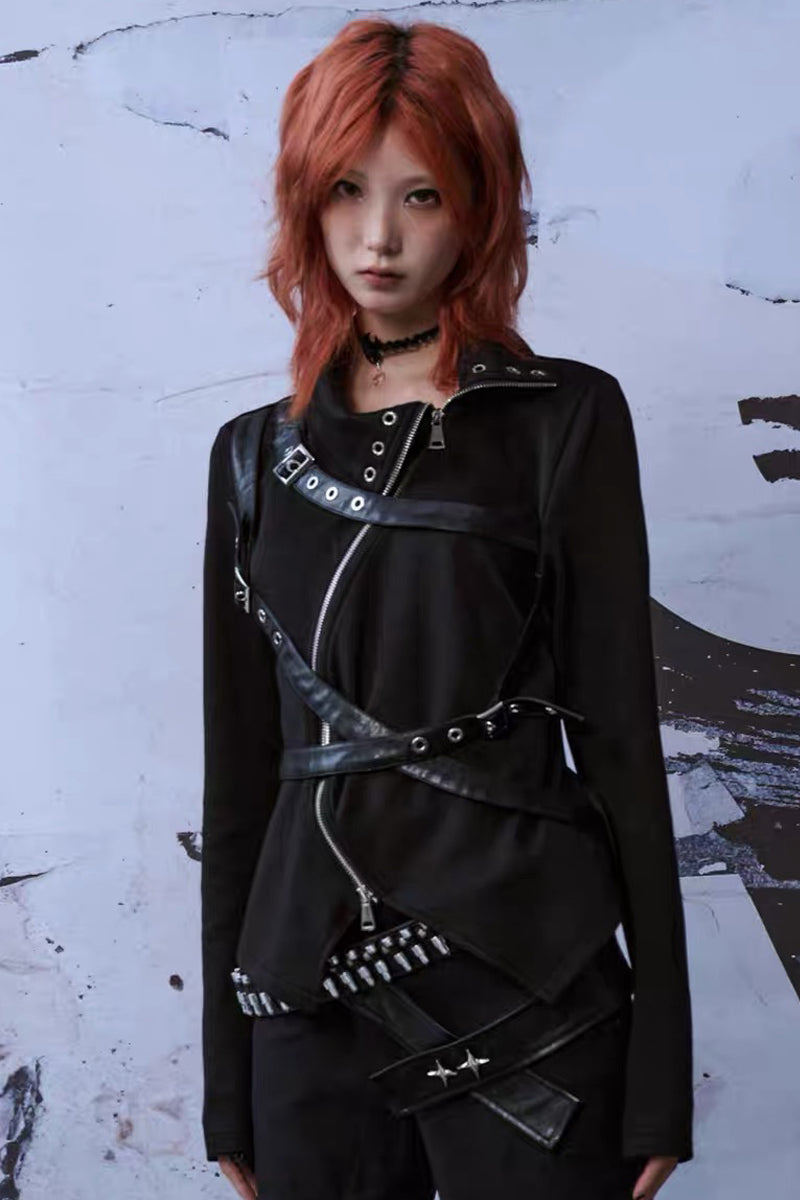 Punk Buckle Harness Long Sleeve Top