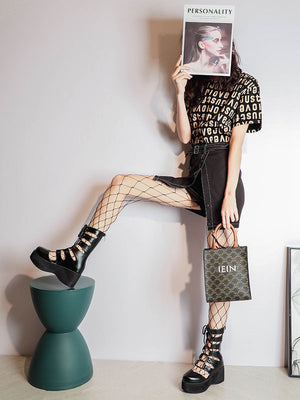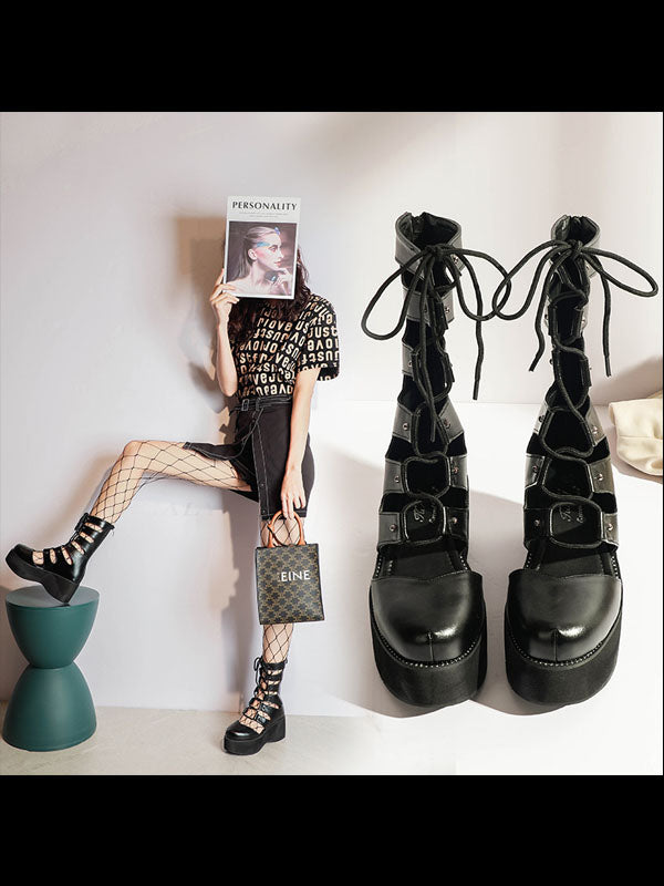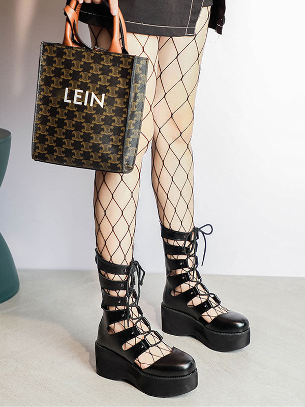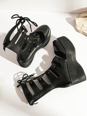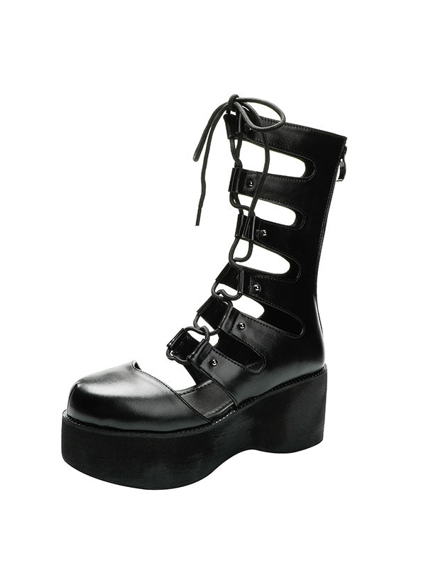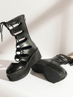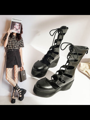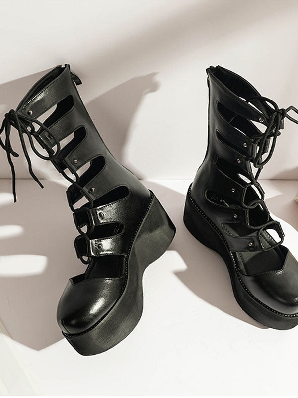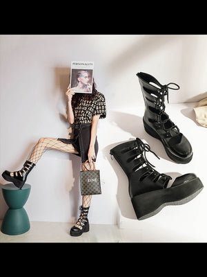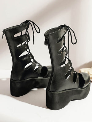 Punk Hollow Out Lace Up Platform Shoes