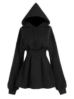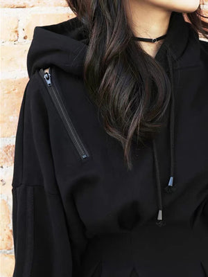 Waisted Zipper Shoulder Hoodie Dress